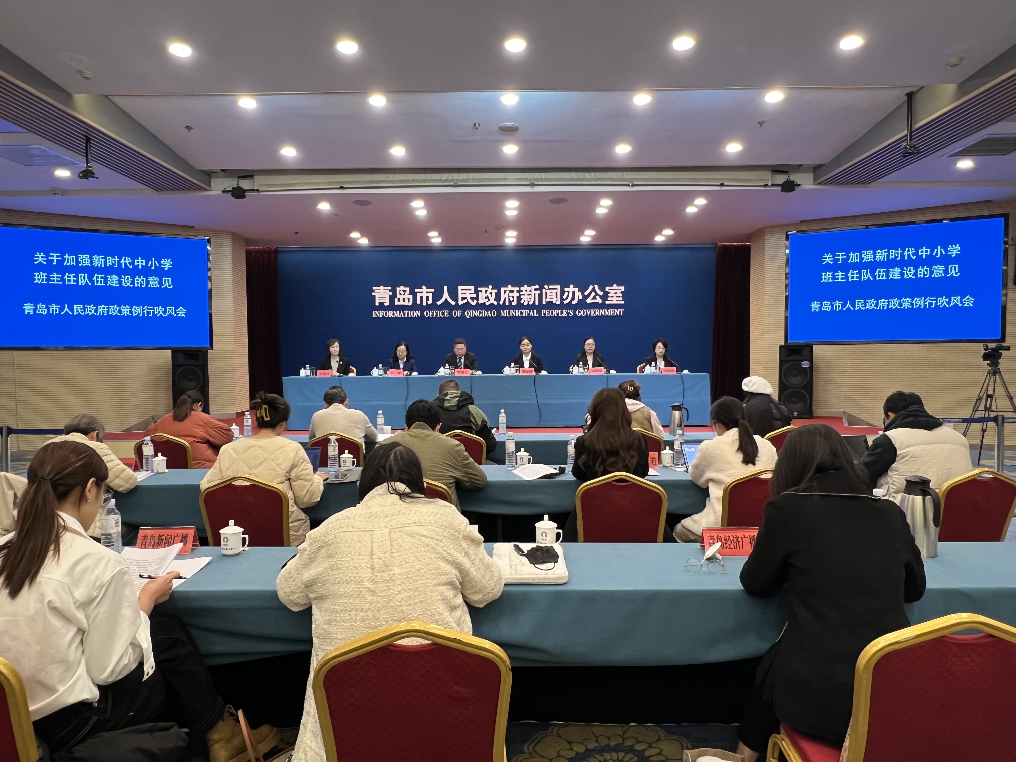 11月15日下午,在青岛国际新闻中心召开新闻发布会,介绍了《关于加强新时代中小学班主任队伍建设的意见》的实施情况。市教育局总督学李晓元;青岛北山小学傅珊珊;青岛市第二中学丁娟;平度市职业教育中心学校刘国锋;青岛高新职业学校田婧婧出席发布会并回答记者提问。