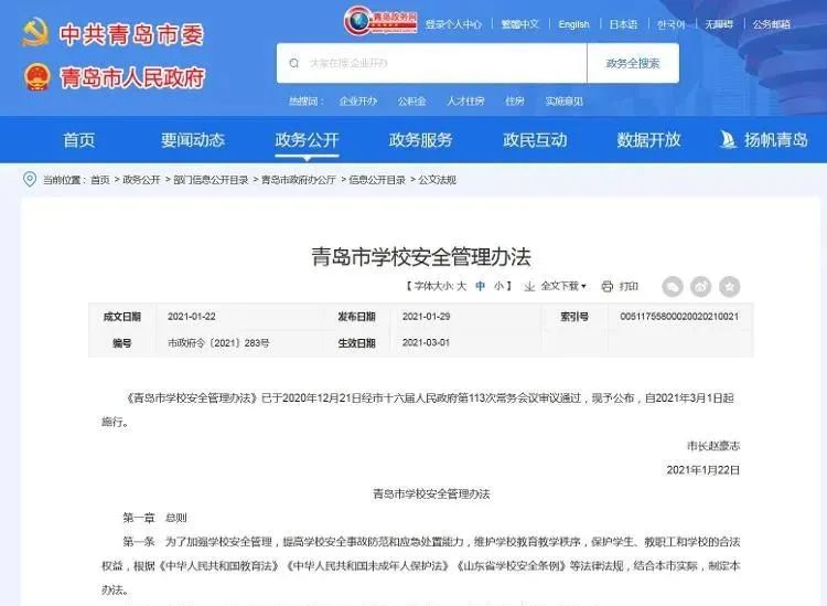 该局相关行政立法部门对《青岛市学校安全管理办法》的解释。