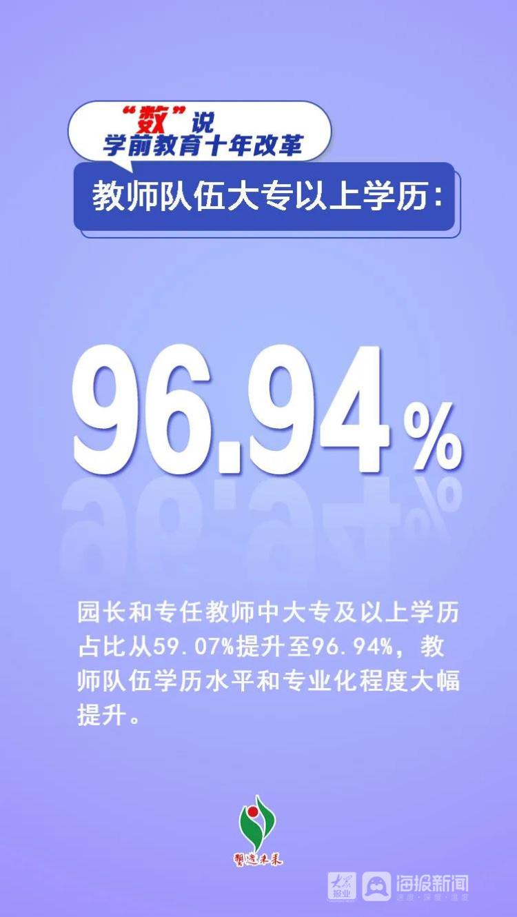 “数”说学前教育十年改革 教师队伍大专以上学历:96.94%