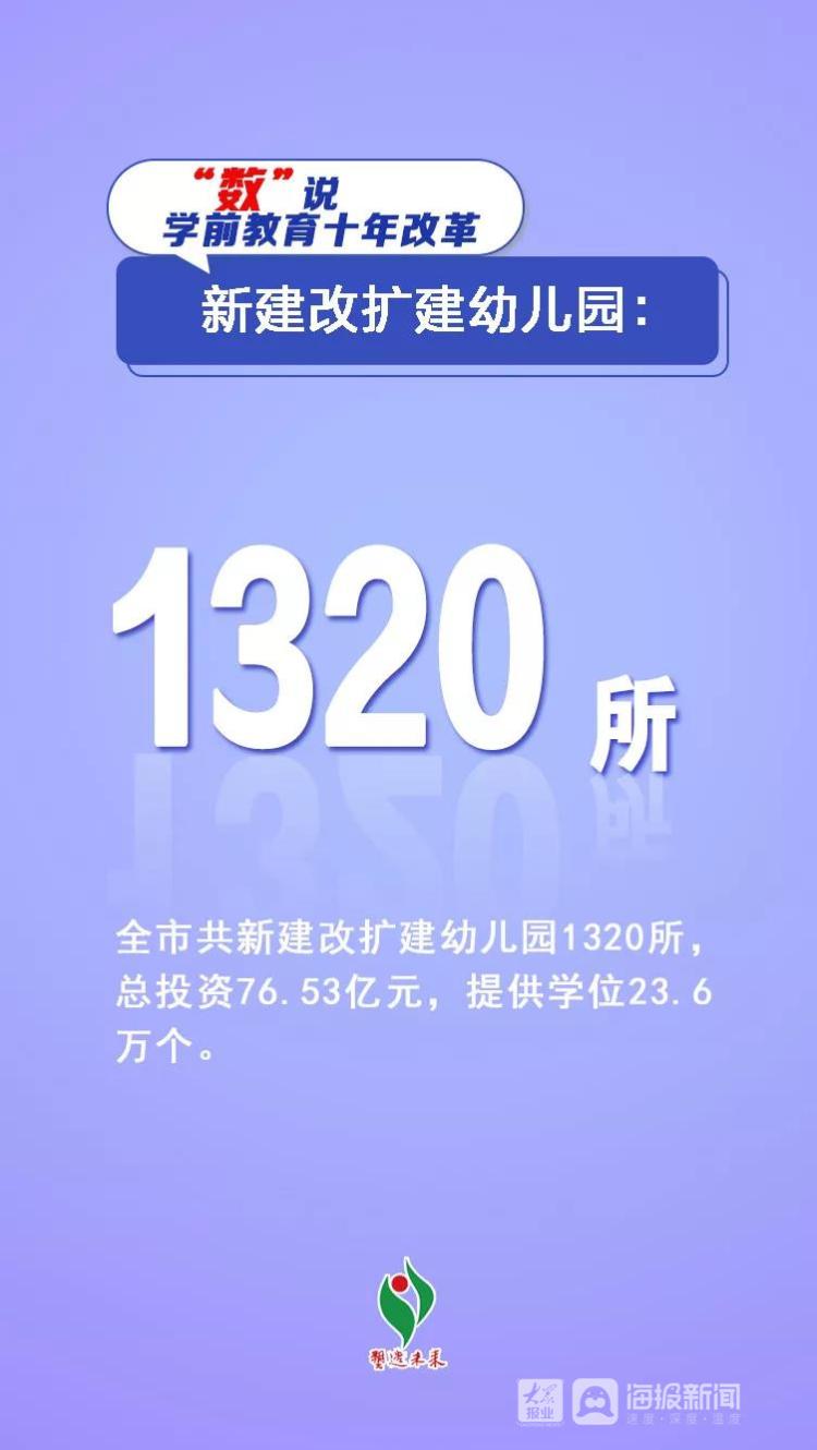 全市共新建改扩建幼儿园1320所,总投资76.53亿元,提供学位23.6万个。