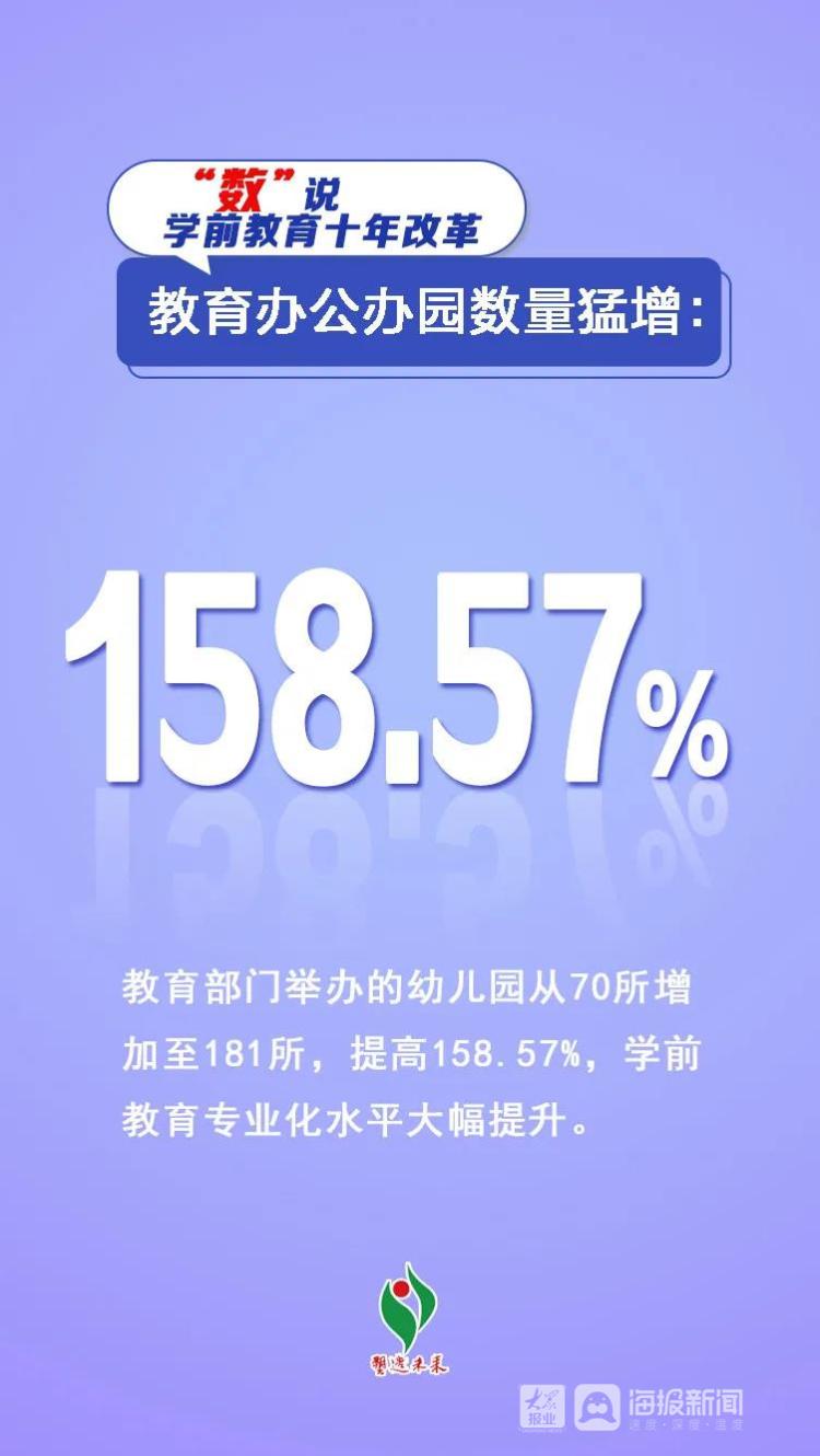 教育部门举办的幼儿园从70所增加至181所,提高158.57%,学前教育专业化水平大幅提升。
