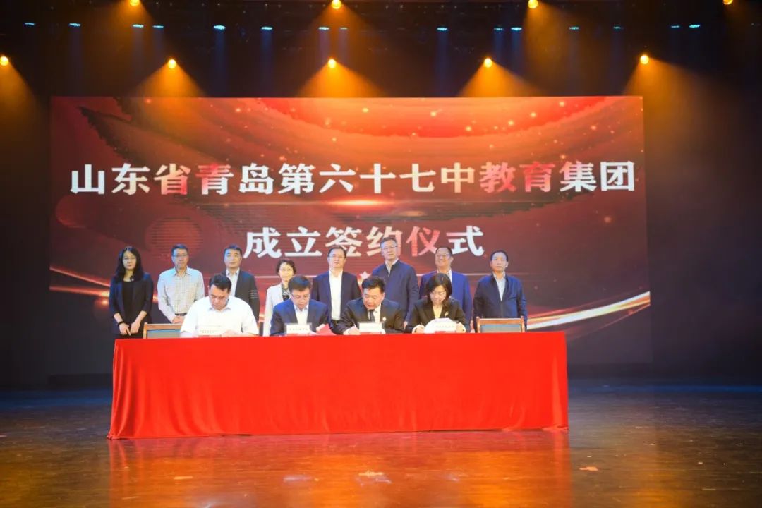 青岛十七中、青岛六十七中和青岛艺术学校在市教育局、区市教体局领导的见证下,同成员单位签约。刘鹏照局长、尹明琴总督学和三所学校领导一起为集团成立揭牌。仪式上,刘鹏照局长为青岛艺术教育集团指导专家代表颁发了聘书。