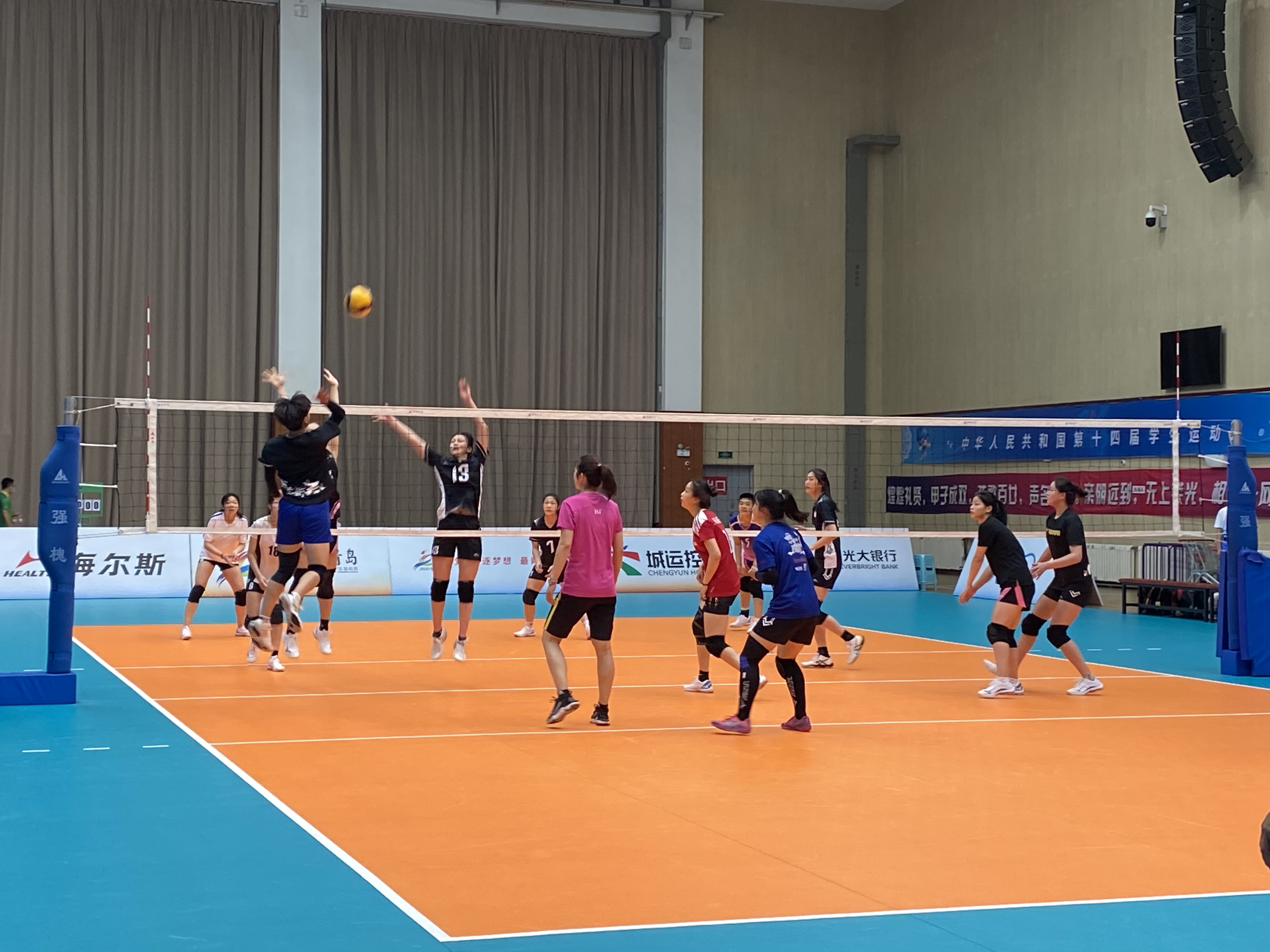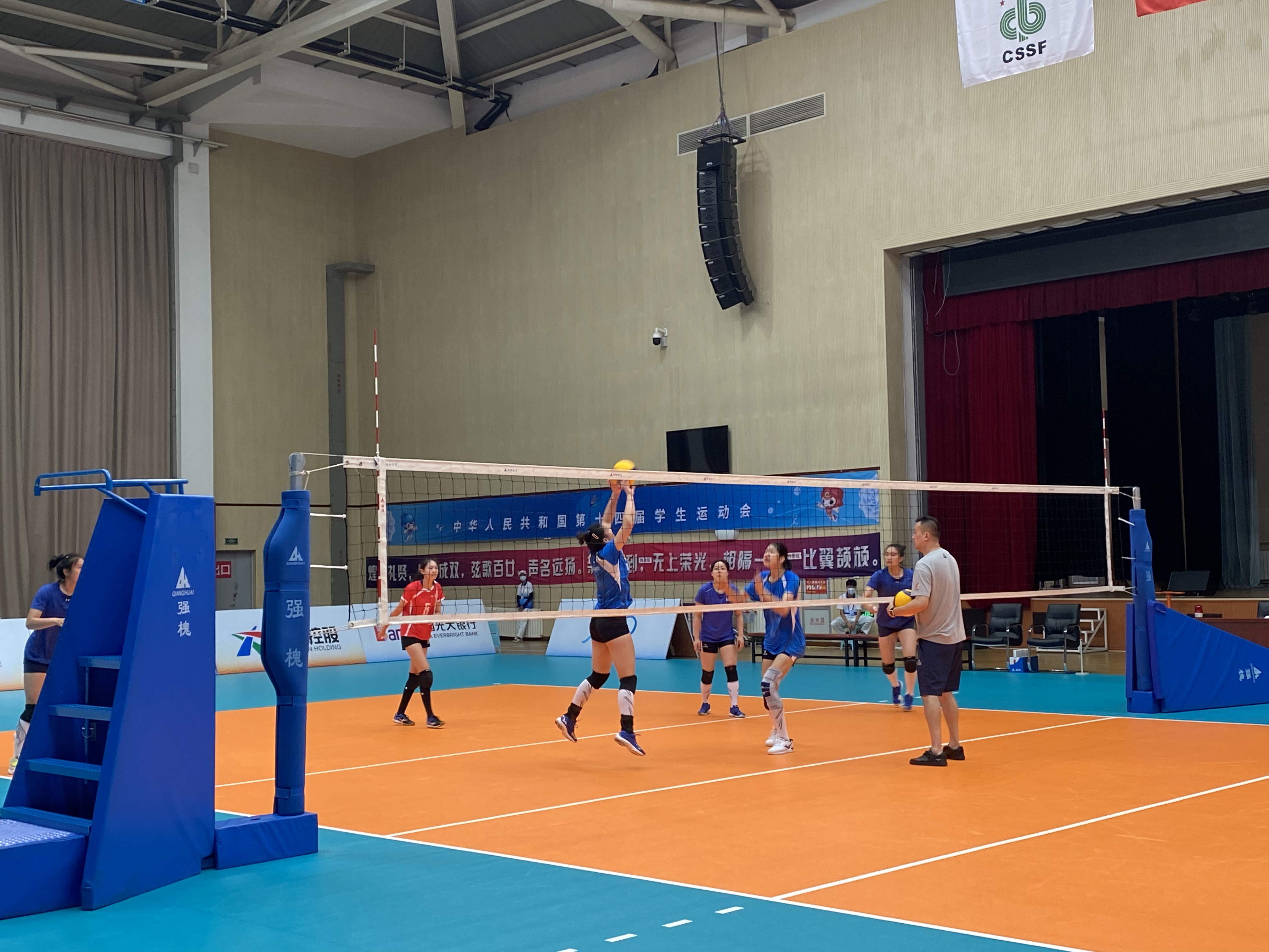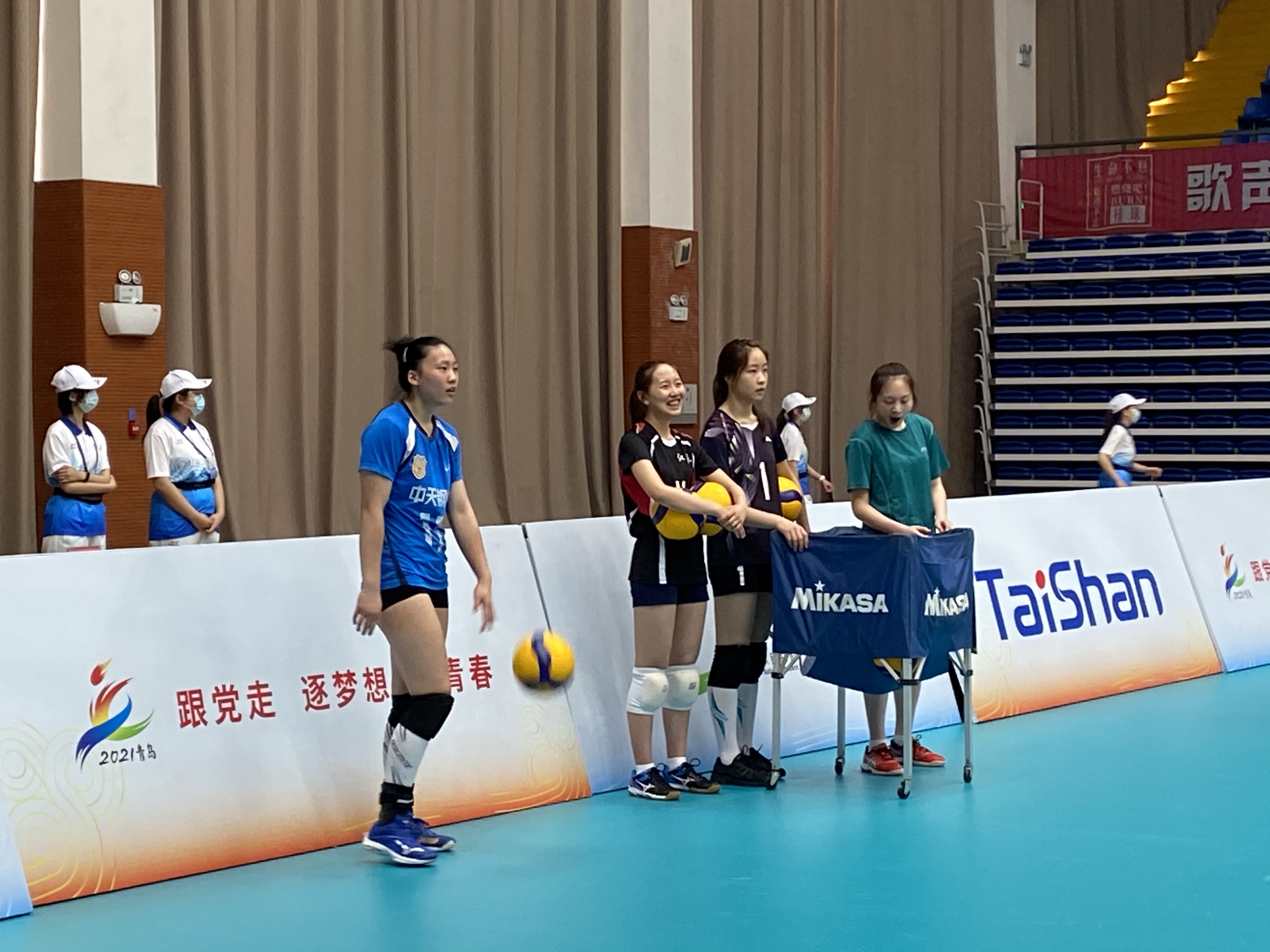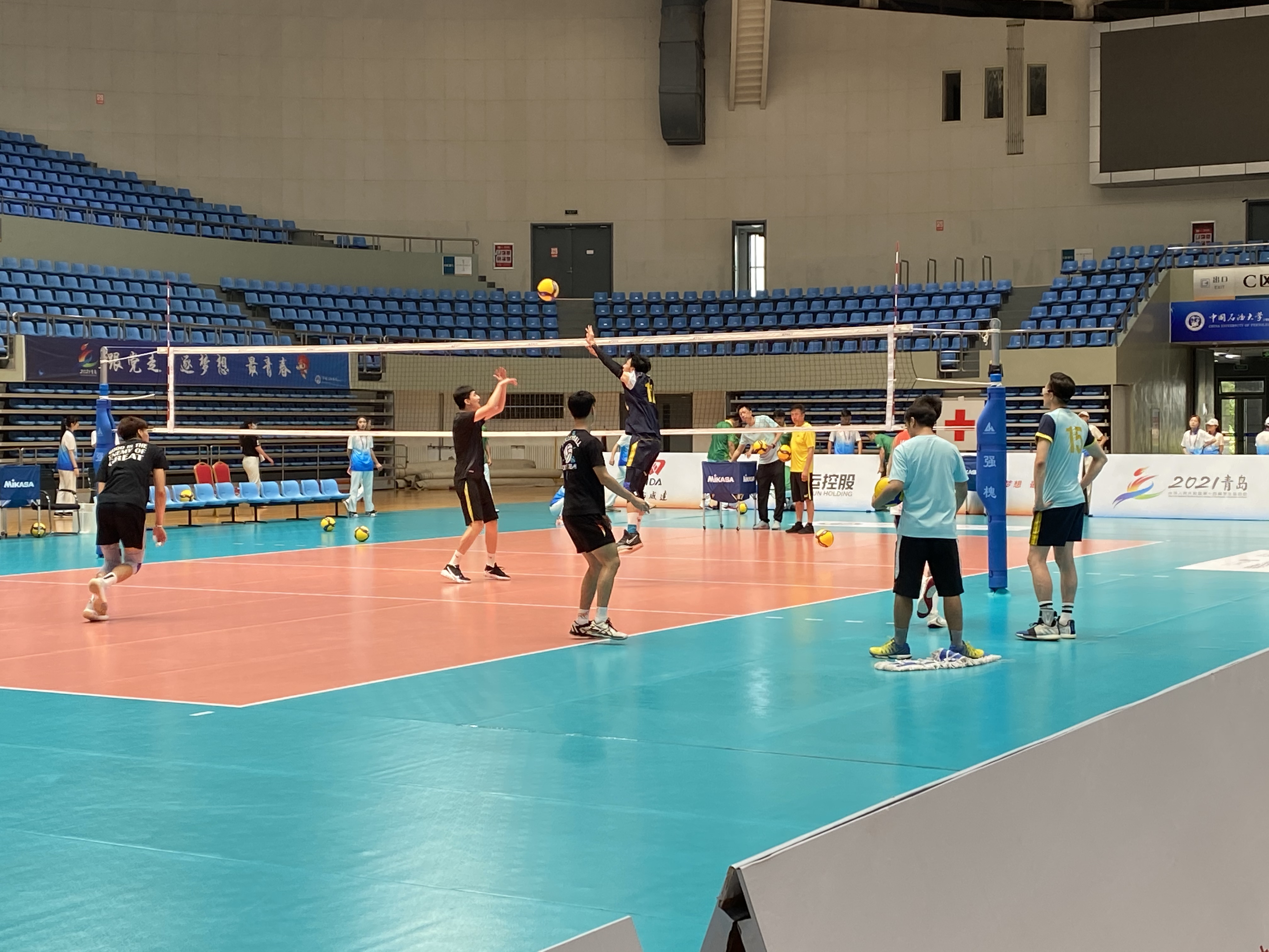 在青岛九中和中国石油大学(华东),女排(中学组)和男排(大学组)各代表队依次提前适应比赛场地并进行赛前训练,每队训练一小时。