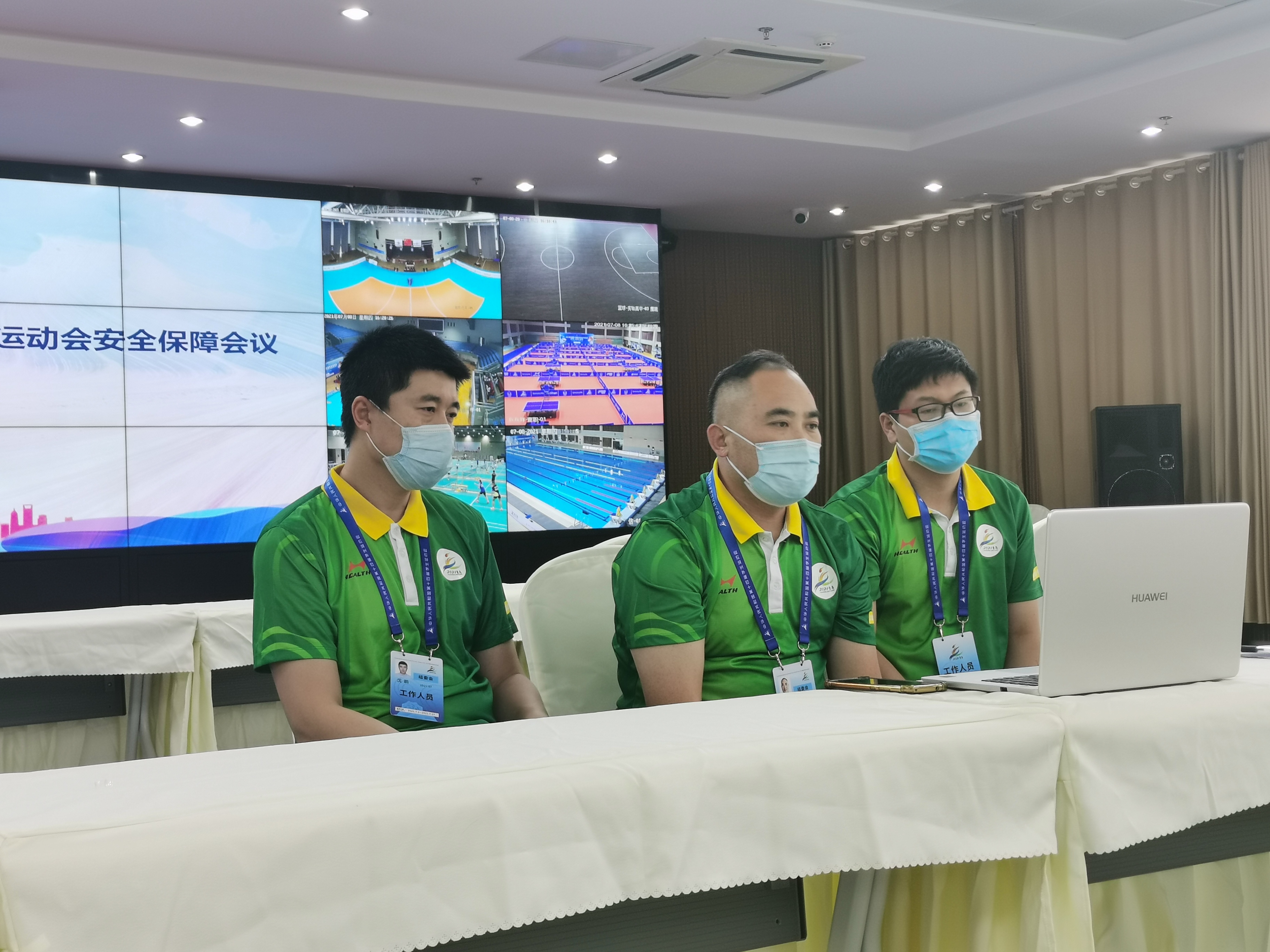 青岛实验高中和青岛三十九中承接篮球比赛,在视频会议中,青岛实验高中宋老师向大家分享了相关安保经验,他表示,学校在比赛前期,多次组织教师从运动员宿舍、食堂、比赛场地等进行安全巡查,在比赛开始阶段,学校增加15名安保人员,每日早中晚三次从食品安全、消防安全、运动员安全保障等方面进行安全巡查,现场安排校医和当地医务人员进行医疗应急保障。