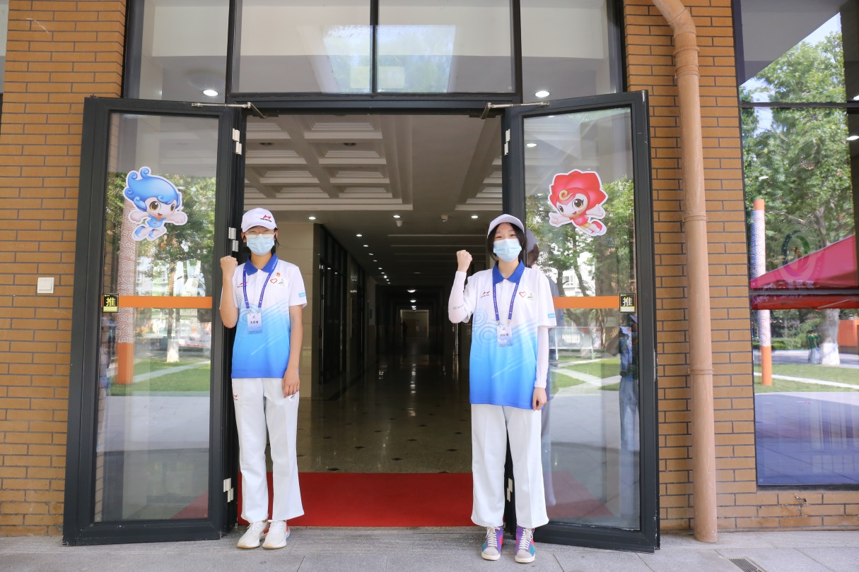 “哇!”午餐时间,江苏中学代表队的同学们一进入餐厅,就露出了欣喜的表情。整洁明亮的环境,餐厅内井然有序;种类多样且可口的菜品满足了全国各地参赛人员的口味;每张桌子上都标明了代表队和运动员姓名,在分区就餐、有效防疫的同时增添了一份温馨和归属感。在宿舍,干净整洁的现代化设施一应俱全;青岛二中分校为参赛人员专门设计了贴心生活手册;每个楼层设置图书角,配备了图书和杂志供参赛人员借阅以丰富赛余时间生活;宿管阿姨热情问候每一位运动员……在这里,有家一般的温暖。