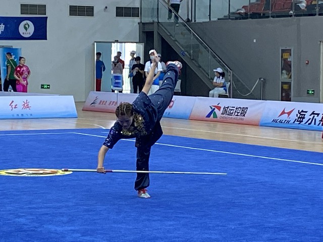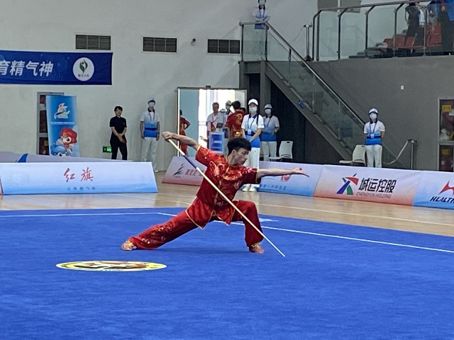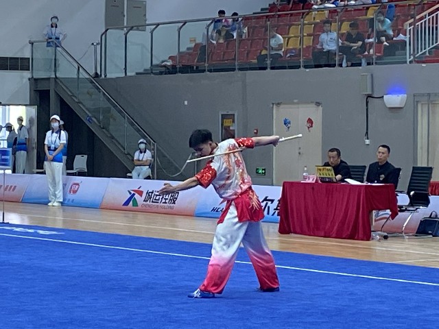 运动员们在赛场上冲拳、弹踢、正蹬、架掌……每一个动作都精准到位,拳法刚劲有力,腿法干脆利落,一招一式彰显精气神,一掌一拳尽显力与美,展示了中华武术的无穷魅力。最终,江苏队包揽自选南刀、自选棍术两枚金牌,山东队摘得一枚自选棍术金牌。
