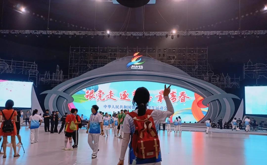7月12日那天,开幕式演出要谢幕时,我站在2号口,看着近两千名演员完成了精彩的演出,看着台上观众欢呼鼓掌,看着台下老师热泪盈眶,内心很激动。这时,彩排时遇到的困难、趣事一幕幕场景在脑海浮现,和大家朝夕相处的这些天,我收获到了真挚而美好的感情,最终定格在我们的相拥道谢、挥手告别。