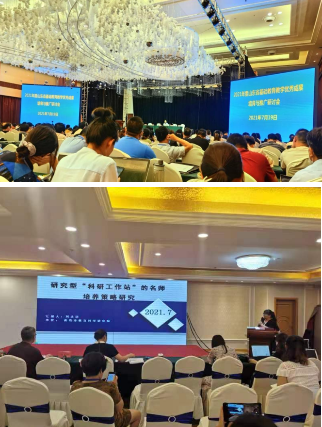 青岛市教科院《研究型“科研工作站”的名师培养策略研究》、市南区教体局《基于“以海育人”理念的区域海洋教育实践探索》、青岛市第二实验小学《基于教师专业发展共同体的幸福教育课程构建研究》、崂山区第二实验小学《大数据技术变革评价方式研究》、胶州市北京路小学《合作式校本教研的范式研究》和即墨区第28中学《德智融合视域下“和谐互助”教学模式30年探索与实践》等六项研究成果在大会上做成果推介交流,较好地展现了我市基础教育教学研究的改革成果,受到与会专家的充分肯定。