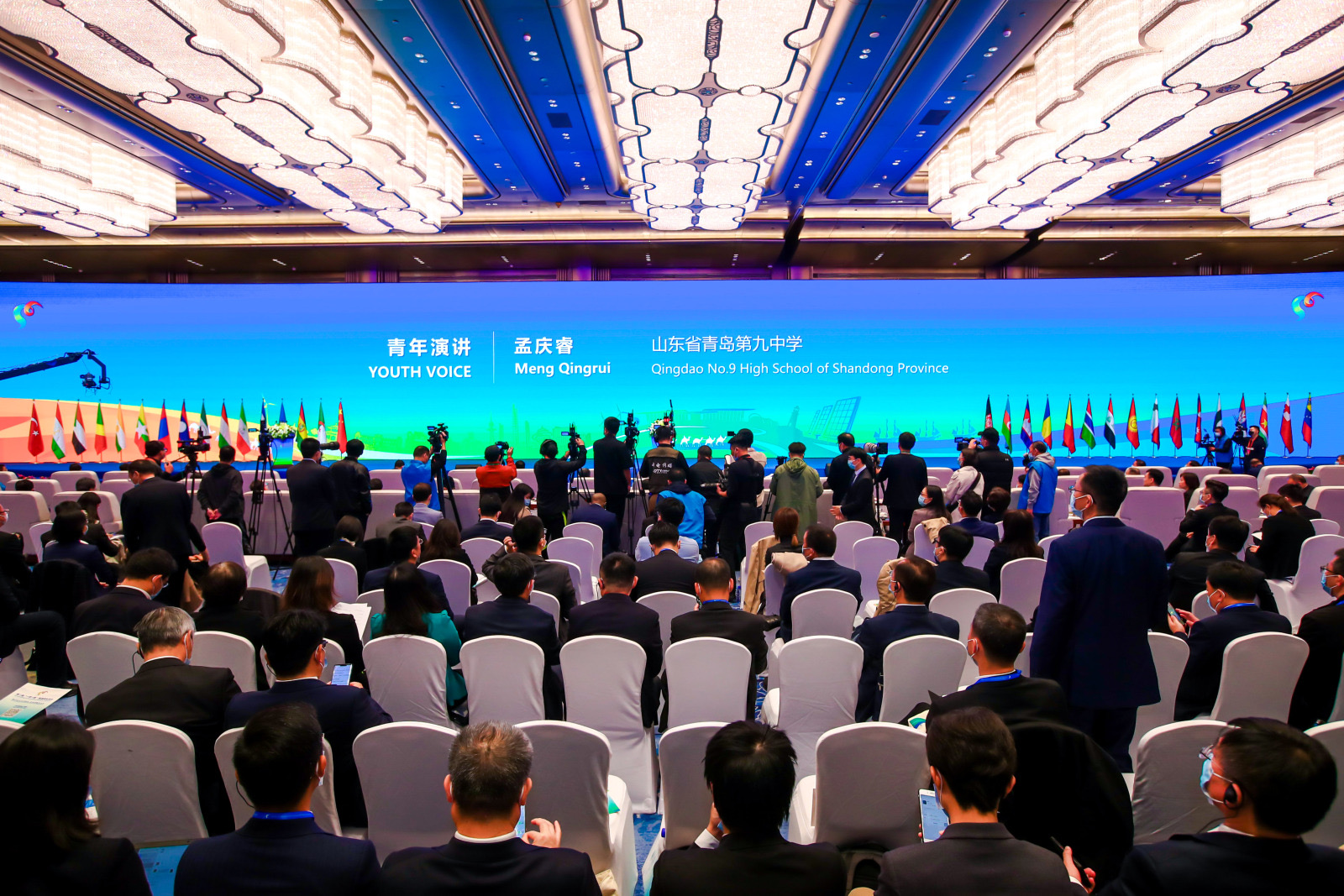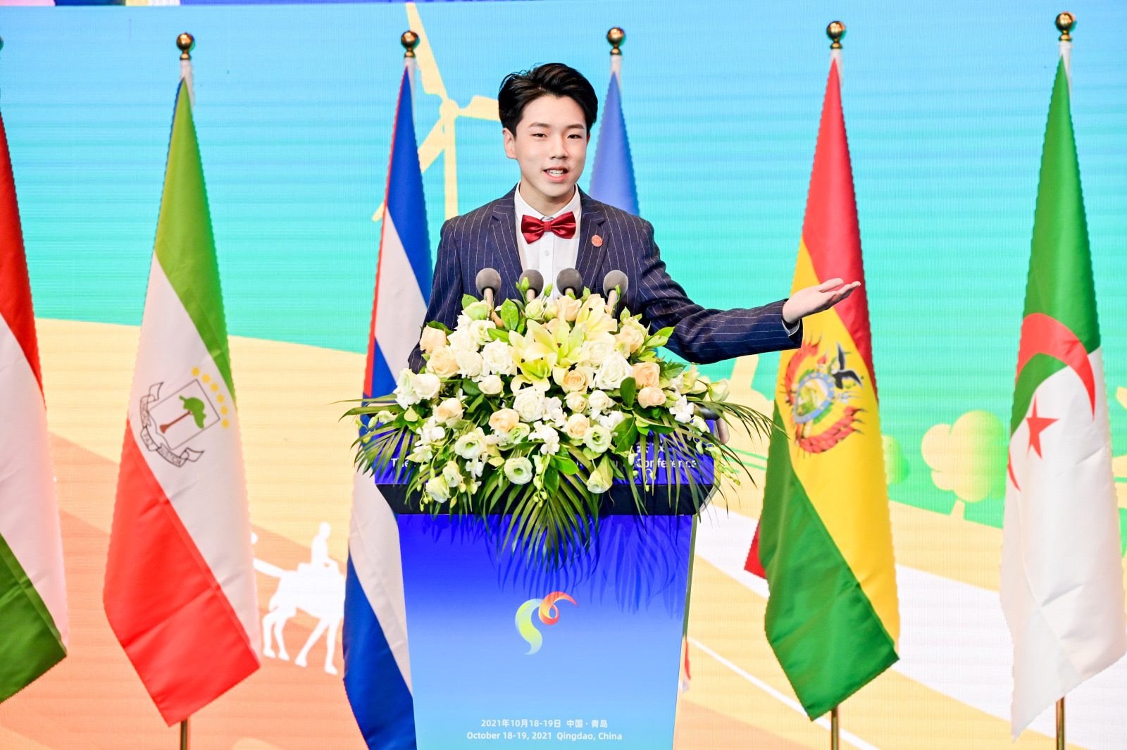 在大会开幕式的青年演讲环节,来自青岛九中的孟庆睿和中国石油大学(北京)的朱丽颖两位青年学生代表围绕“迈向绿色能源美好未来”用英语进行了演讲分享,呼吁在中国实现“双碳”战略进程中以及全球能源绿色转型合作中,青年人要勇于担当,在实践和全球合作中发挥年青一代的作用。