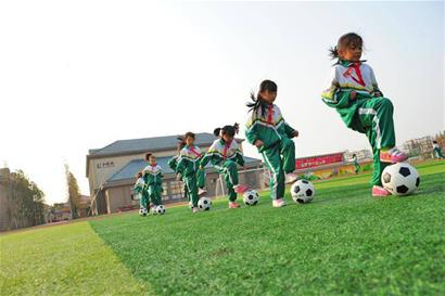 日前举行的全国青少年体育管理干部培训班暨体教融合推进会上,国家体育总局青少年体育司司长王立伟就当前我国体教融合的相关工作情况作主旨讲话,将青岛市体教融合案例作为典型经验进行推介,青少年体育工作“青岛模式”叫响全国。小学生们进行足球训练。