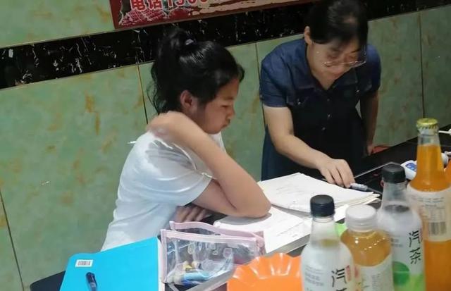 讲完一道题后,周老师告诉小女孩,同类型的题可以一块做做,再给她看。在小女孩继续做题的时候,周老师去旁边吃了饭。“就这样她做一道,然后我就吃几口饭,讲一讲,她再做一道,我再吃几口饭再讲一讲。”