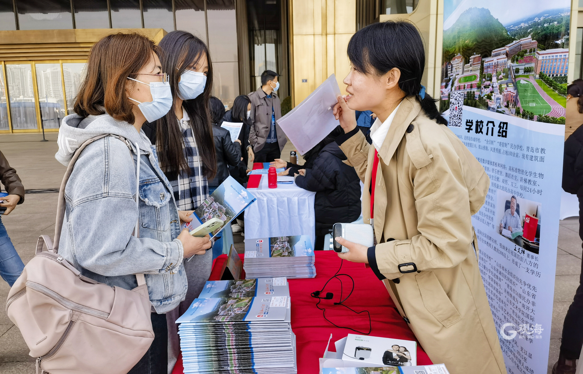 咨询现场,各学校拿出了最好的状态迎接学生和家长。青岛五十八中的老师们统一穿上了制服,细节彰显学校的精致管理。青岛实验高中的老师们则是穿上了“人文灰”色中山装,展现学校的精神风貌。