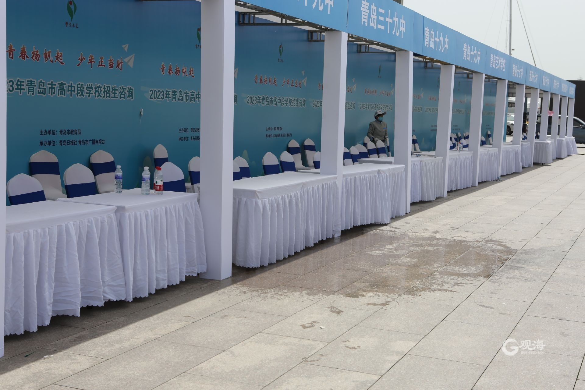青岛日报社/观海新闻4月15日讯 15日,2023年青岛市高中段学校招生咨询会在奥帆中心举行。全市60余所学校现场宣讲,近10万考生及家长到场咨询。现场,5万本招生咨询指导手册被家长领走,各校的各式宣传材料也被分发出去。13时许,咨询会落下帷幕,组委会工作人员在工作群发了一组照片,火爆的咨询会结束后,现场没留下一片纸屑,一切整洁如初,岛城家长用自觉的文明行为给这场盛大的活动画了一个圆满的句号。