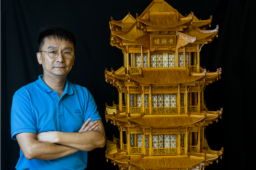 柱、梁、斗、拱、昂……犹如一个个跳动的音符,孙广顺被古建筑的魅力所折服,选择将其定格在指尖。在近十几年对于木作手工的探索中,黄鹤楼独特的飞檐设计一直吸引着他。